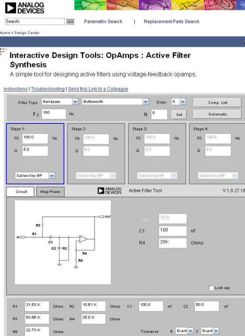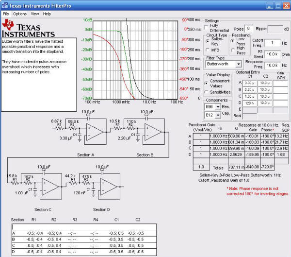 filter types for Sallen-Key Circuit type up to 10 poles (5 Amplifier