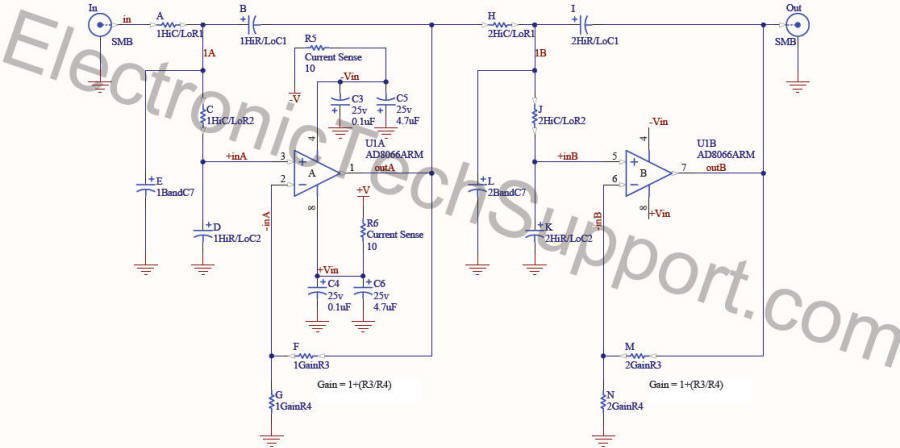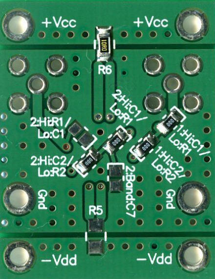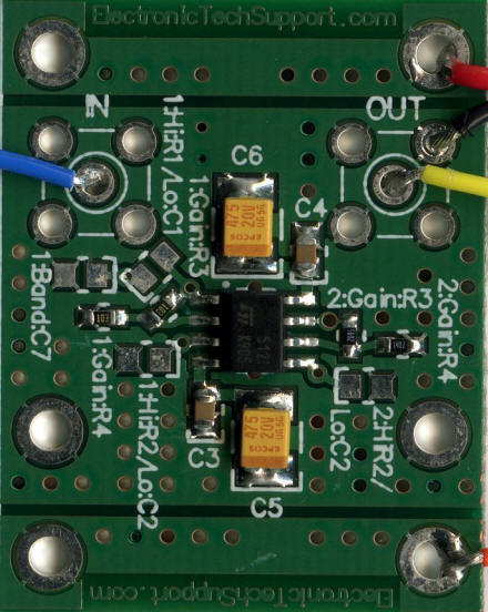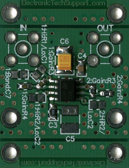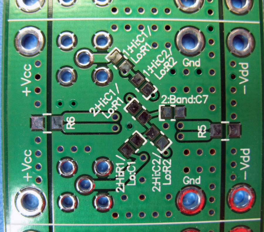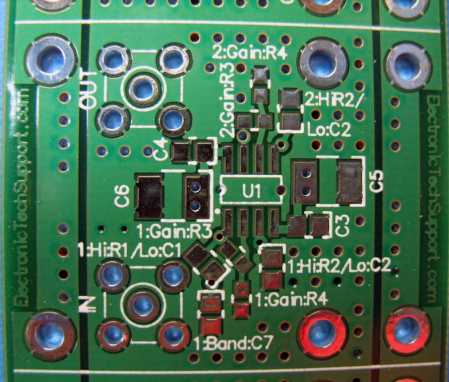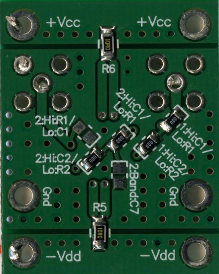 | 1 Dual Amplifier section (cut) populated, 4 pole custom filter w/ gain
